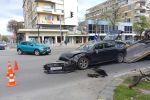 Кола се обърна по таван на булевард във Варна (снимки)
