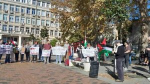 Демонстрацията беше насочена срещу нарушаването на обявеното примирие в Газа от страна на Израел, по думи на присъстващите. Те носиха плакати с послания, сред които "Мълчанието ви е съучастие в геноцида"...