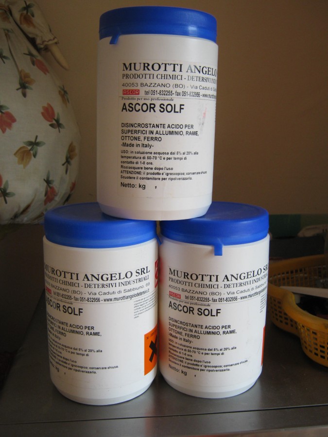 Най –добрия препарат за почистване на всички кафе машини от варовик.ASCOR SOLF e мощен киселинен препарат за приложение в кафе-машини, миялни машини, тенджери, душове , бани, парни ютии и парогенератори, ел.кани за вода, нагреватели и други уреди за варене на вода. Отстранява надеждно отлаганията от варовик, мръсотия и ръжда. Екологично чист продукт, предназначен за многократна употреба върху всякакъв вид киселинно устойчиви повърхности. Почиства от налагания на варовик и ръжда кафе машини и автомати и др. с висока степен на ефективност.Разфасовка от 1 кг , който се разтваря в 10 литра вода , с така приготвения разтвор могат да се промият 22 кафе машини.Цена 25 лева. Изпращам с еконт с 20 процента по евтина доставка с опция преглед