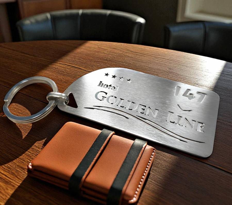 Изработка на хотелски ключодържатели с лого и номер на стая.