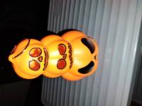 Свети с мека, но наситена топла оранжева светлина, мига като жива.