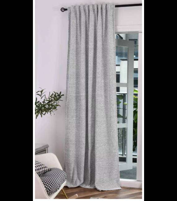 Готова завеса "MONTANA" крем с черно от Шенил с Букле структура, размер 245x140см. с универсална ширит лента за окачване на релса или тръбен корниз, код-2023330