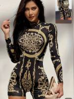 Моден дамски гащеризон с щампа, ежедневен гащеризон с дълъг ръкав и тесен дамско облекло.