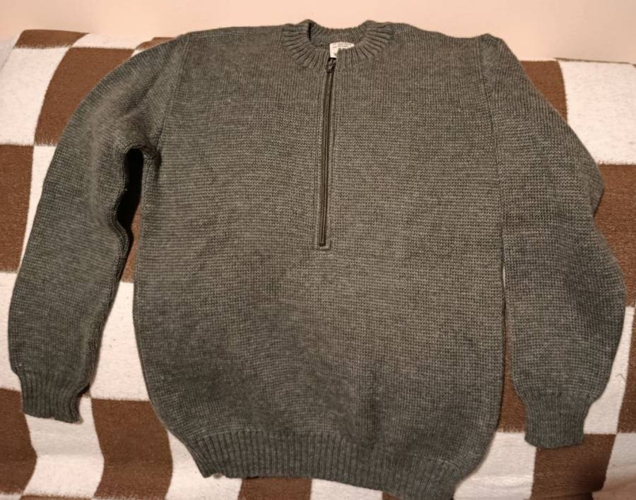 Продавам нов вълнен сив пуловер с цип. Размери: ширина 56 см., дължина 74 см. Състав: вълна 70%, полиамид 30%.