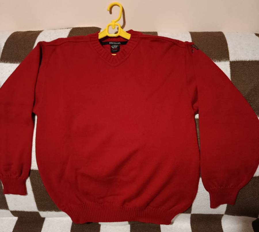 - Червен вълнен мъжки пуловер