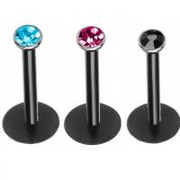 Обица за устна черен лабрет с кристал топче. Цена за: 1 брой. Обица за устна, ухо и други части на...