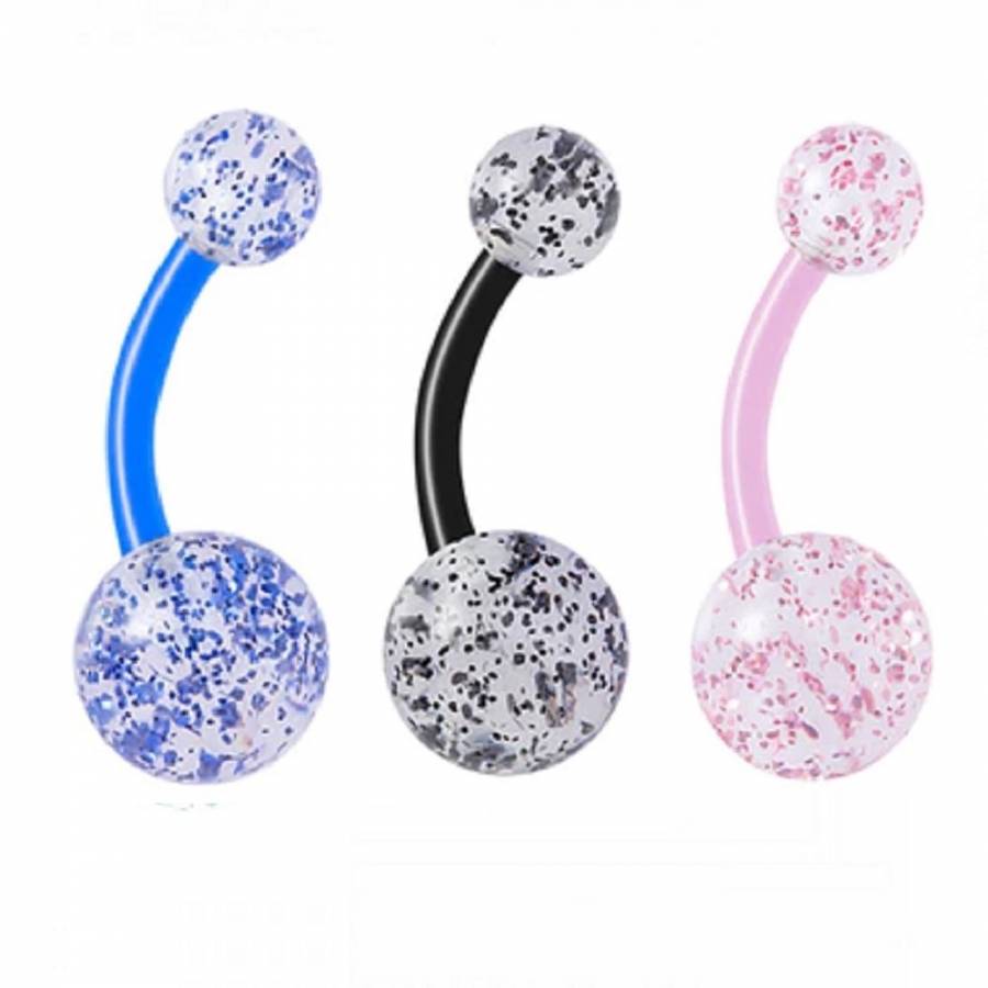 Обица за пъп, ухо и други части на тялото. Обица с 2 пластмасови, развиващи се топчета. Материал:...