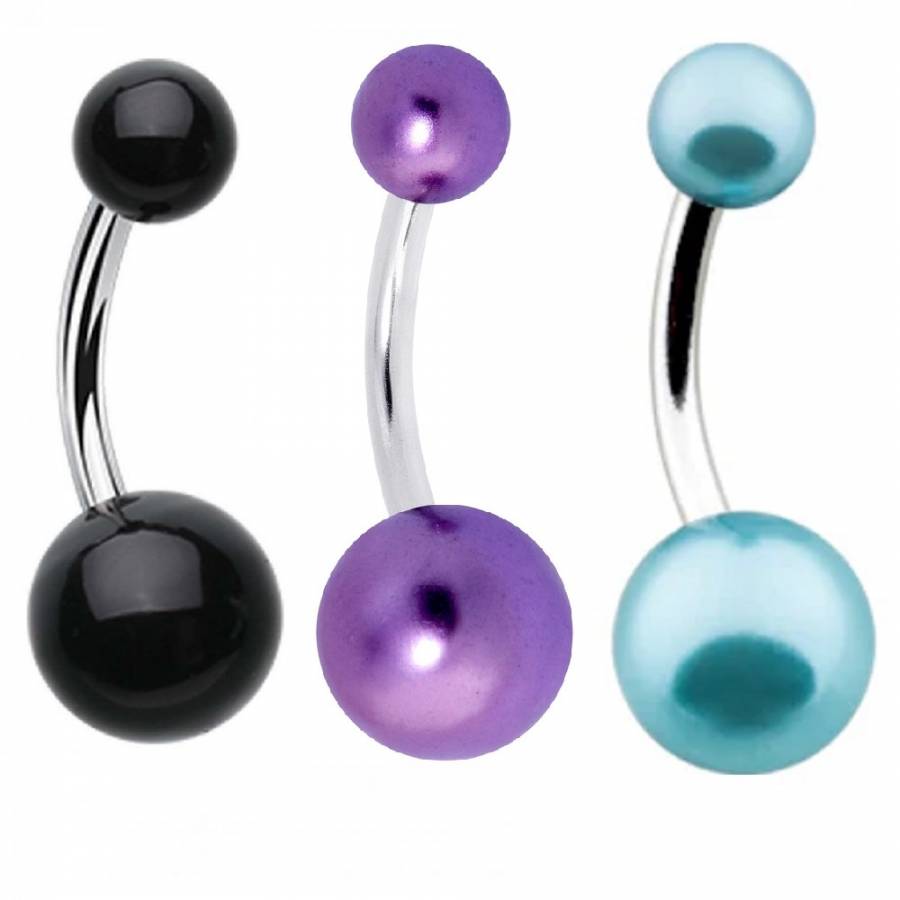 Обица за пъп, ухо и други части на тялото. Обица с 2 пластмасови, развиващи се топчета. Материал:...