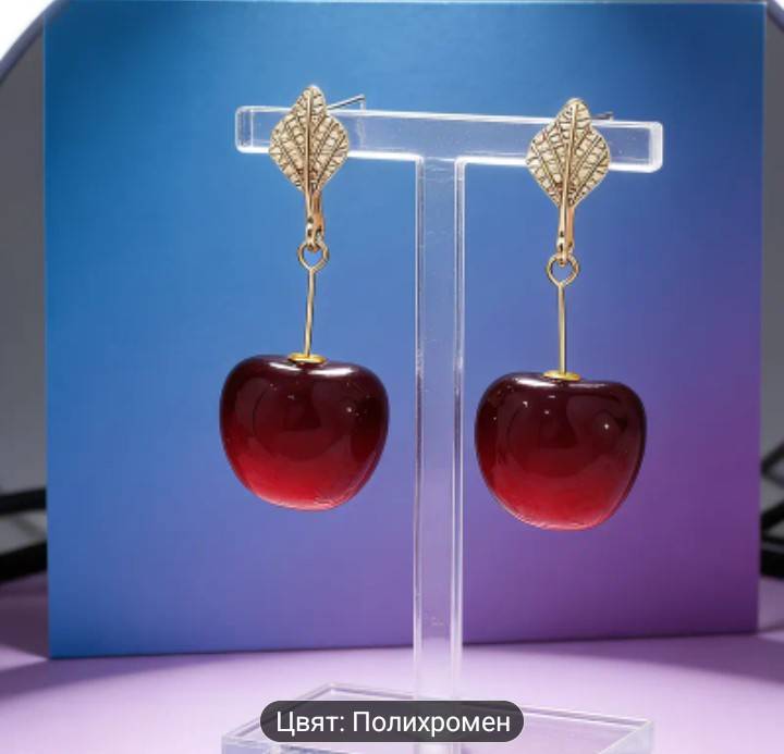 Двойка модерни и изискани винено-червени обеци с череши |