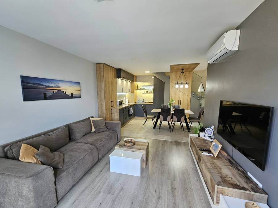 Апартамента е напълно ново обзаведен със всичко необходимо за живеене - с мебели , бяла и черна техника , ел. уреди , климатици