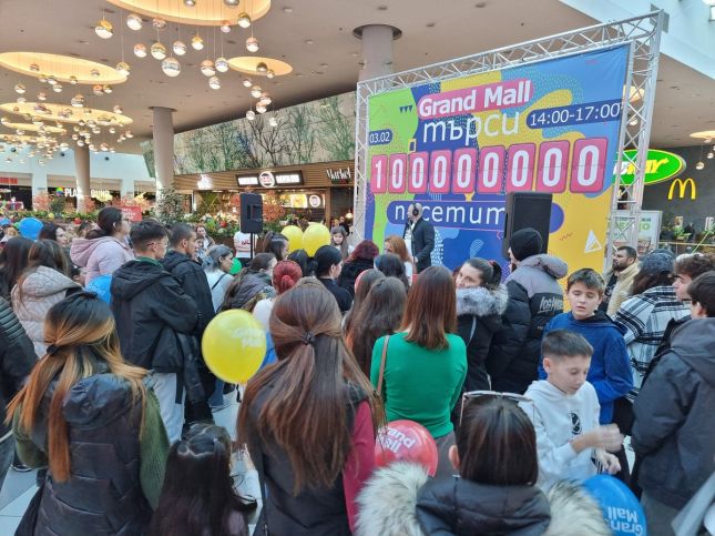 Grand Mall - лидерът на извънстоличните търговски центрове, отпразнува заедно с многобройните си посетители в съботния ден своя 100-милионен посетител. 10 късметлии получиха ваучери за пазаруване на стойност 100 лв., бяха раздадени и множество предметни награди. Голямата награда - ваучер за пазаруване за 1000 лв. - отиде при младата майка Виктория Вичева.