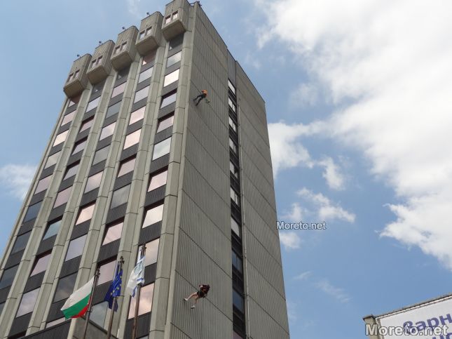 Изключителна атракция за присъстващите бе извеждането на хора от височките части на сградата. Алпинисти се спуснаха от покрива на зданието, а от по-ниските етажи над служебния вход бе свален човек чрез тролеен метод. Кукла влезе в ролята на спасен чрез скок върху надуваема основа.Чучелото полетя от височина около 20 метра.