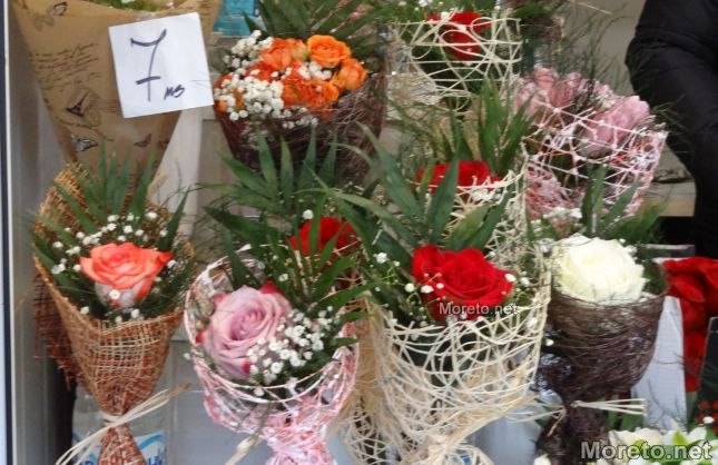 Въпреки че розите са най-популярни на тази дата, по сергиите могат да бъдат намерени още цветни лалета, фрезии и лилави зюмбюли с луковица. Някои от търговците са аранжирали и нежни букети за тези, които са решили този път да не заложат на алената класика.