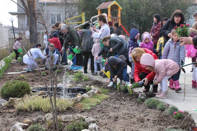 Традицията беше спазена и за пореден път дворът се превърна в цветна феерия. Децата заедно с родителите си и екипа на градината засадиха богато разнообразие от пролетни цветя.