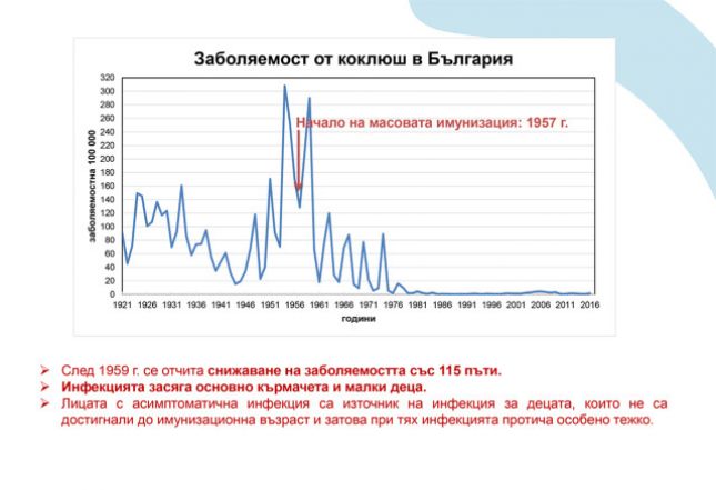 Коклюшът е инфекция, която засяга основно кърмачета и малки деца и при тях заболяването протича особено тежко. За тях източник са лица с асимптоматична инфекция. Началото на масовата имунизация за коклюш започва през 1957 г. в България като след 1959 г се отчита снижаване на заболяемостта със 115 пъти.