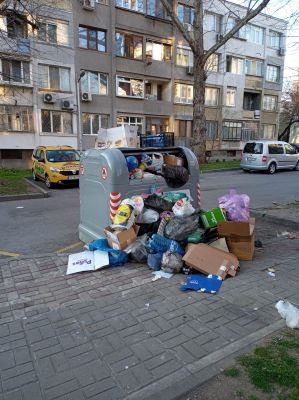"На това място имаше 4 или 5 контейнера. Наскоро ги смениха с два нови. Те обаче са недостатъчни и бързо се напълват. След това живущите в района са принудени да оставят чувалчетата си със смет около самите контейнери.