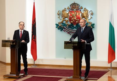 Това заяви президентът Румен Радев след пленарните разговори и срещата „на четири очи“ с президента на Албания Байрам Бегай. Албанският държавен глава и съпругата му Арманда Бегай бяха посрещнати от Румен Радев и Десислава Радева с церемония днес пред храм-паметника „Св. Александър Невски“.
