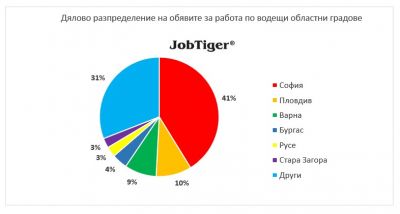 Като дялово разпределение в София обявите съставляват 41%, а в останалите градове съотношението е следното: Пловдив (10%), Варна (9%), Бургас (4%), Русе (3%) и Стара Загора (3%).