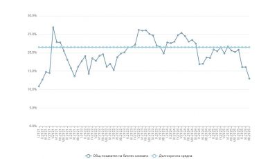 През декември 2025 г. общият показател на бизнес климата в страната се понижава с 3.1 пункта спрямо ноември, от 16.1% на 13.0%, като спад е отчетен във всички наблюдавани сектори – промишленост, строителство,...