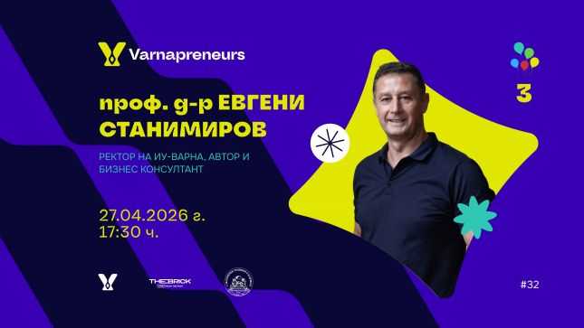 На 27 април на сцената на Varnapreneurs ще бъде проф. д-р Евгени Станимиров - ректор на Икономически университет - Варна, бизнес консултант, автор и един от двигателите на предприемаческата и иновационната среда във Варна и региона.
