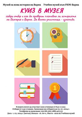 Дата на събитието: 1 март 2024 г. (петък). Начален час: 16:00 ч. Място: залата на Учебен музей при РИМ-Варна. Заповядайте!