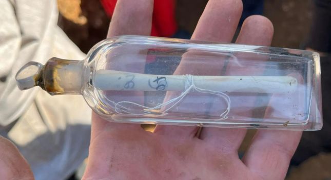 Вътре в бутилката е имало съобщение на хартия, навито на руло и завързано с връв.
