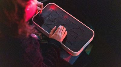 Правоъгълното устройство, наподобяващо кутия, се нарича хаптичен дисплей и е проектирано да стои удобно в скута на потребителя. То пресъздава игралното поле или корта, като преобразува движението в реално време във вибрации, които феновете могат да проследяват с върховете на пръстите си, предоставяйки им уникален начин да „усещат“ играта.