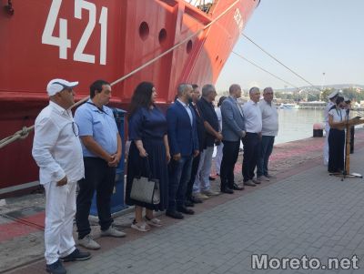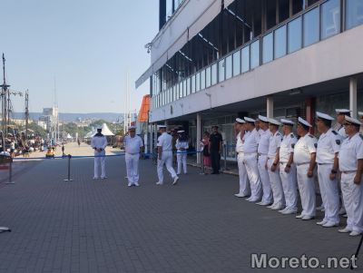 Преди това рожденият ден на плавателния съд бе отбелязан с тържествено издигане на флаговете на борда.