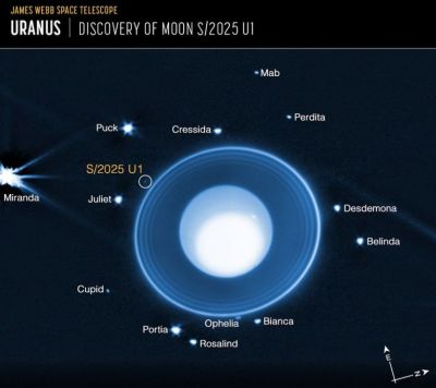 Астрономи, използващи космическия телескоп „Джеймс Уеб“ на НАСА, откриха нов спътник на Уран. Малката луна, временно обозначена като S/2025 U1, е забелязана на 2 февруари 2025 г. от екип, ръководен от Югозападния изследователски институт (SwRI), съобщава NASA. С откритието броят на известните спътници на планетата достигна 29.
