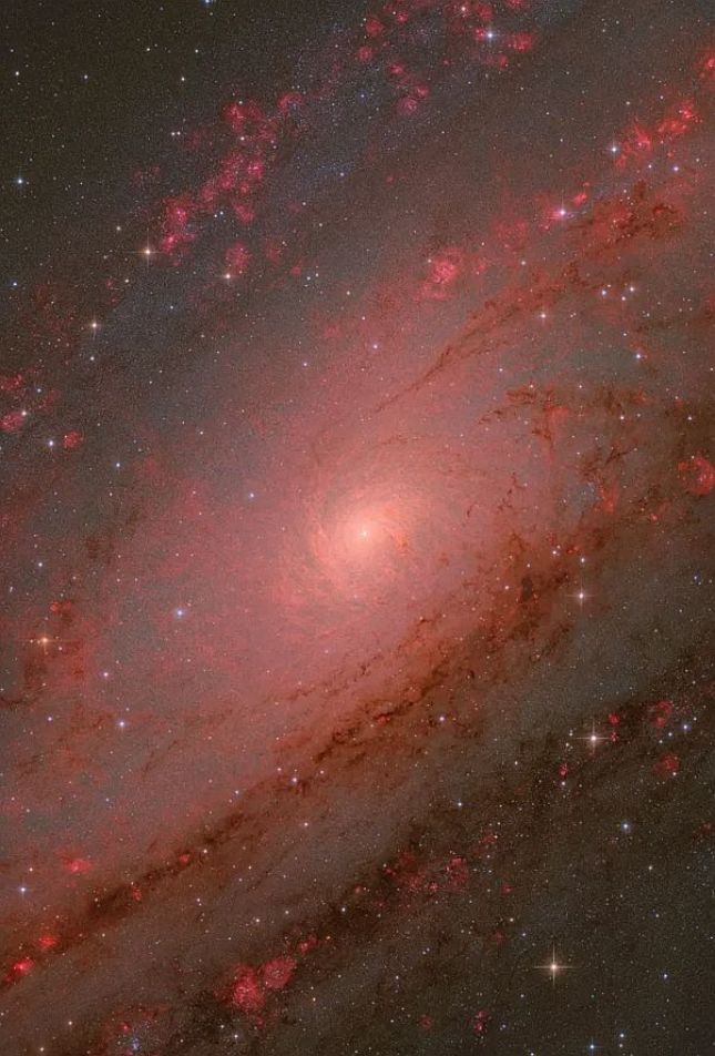 Ядрото на Андромеда показва централната област на галактиката Андромеда (известна още като M31), която е най-близката до нас голяма галактика на около 2,5 милиона светлинни години. Андромеда е спирална галактика с преграда, подобна на нашия Млечен път. Тя е съставена от външна спирална структура от прах, газ и звезди, свързани чрез плътна, преградна концентрация от ярки гигантски звезди в галактическото ядро.
