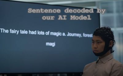 Учени провеждат експеримент, при който на 29 участници се показват изречения на компютърен екран, които трябва да бъдат прочетени мислено. Изкуственият интелект улавя мозъчните вълни и показва декодираната информация на монитора.