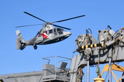 Вертолет „Пантер” от авиобаза „Чайка” на Военноморските сили осигури безопасното пътуване до добре охранявания район на Военноморска база - Варна.