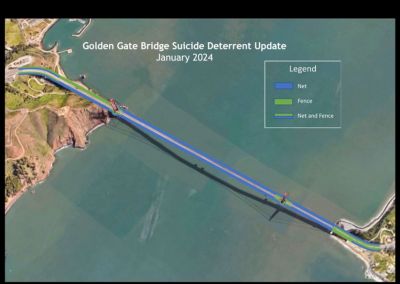 Магистралният и транспортен окръг на моста Голдън Гейт каза, че мрежата вече има желания ефект. Средно годишно е имало около 30 потвърдени самоубийства на моста. Но през 2023 г., докато мрежата все още беше в процес на изграждане, „имаше 14 потвърдени самоубийства, намалявайки средния брой самоубийства с повече от половината“, се казва в изявление.