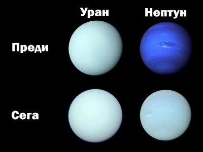 Изображения от космическа мисия през 80-те години на миналия век показаха, че Нептун е наситено син и Уран зелен.