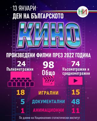 През 2022 г. са произведени 98 български филма, от които 33 са игрални, съобщават от Националния статистически институт