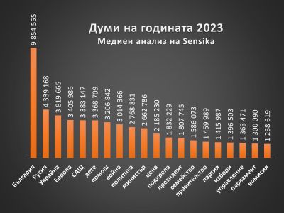 Анализът на системата за глобален медиен мониторинг и анализи Sensika с помощта на софтуерни инструменти и модели за машинно обучение, тренирани на български език, стъпва на проверени 10 милиона и 600 хиляди публикации в 9730 информационни онлайн източника за периода 1 януари – 31 декември 2023 г.