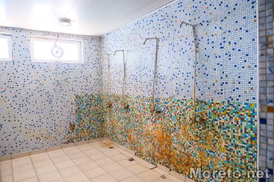 Съвсем видно е, че голяма част от плочките в басейна липсват. Никак не е добро състоянието и на настилката около съоръжението. В съблекалните и душовете също има какво да се желае. Начупени или липсващи плочки, корозирали метални елементи.