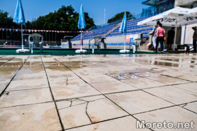 Със затварянето на басейна във вторник веднага е направено шокиране с хлор. В резултат водата се е избистрила още на следващия ден. Паралелно с обработката с химикали робот почиства дъното и видът на съоръжението е значително подобрен, видя репортер на Moreto.net.