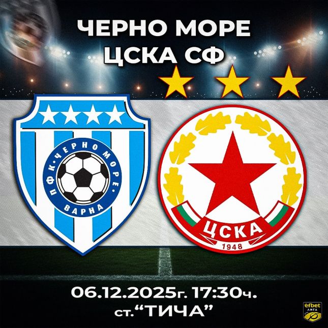 От 17:30 часа днес Черно море приема ЦСКА в мач от 19-ия кръг на efbet Лига. Двубоят е последен за моряците от първенството за 2025 година. Срещата между двата тима се явява пряк сблъсък за Топ 4. ЦСКА...
