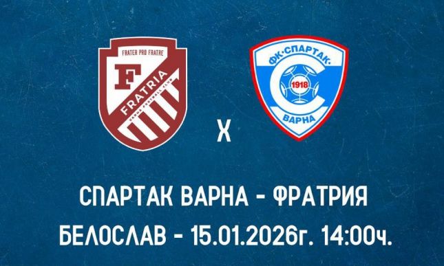 Варненският Спартак ще изиграе днес първата си контролна среща от зимната подготовка. Съперник на „соколите“ ще бъде тимът на Фратрия. Двубоят ще се проведе в Белослав и ще започне в 14:00 часа.