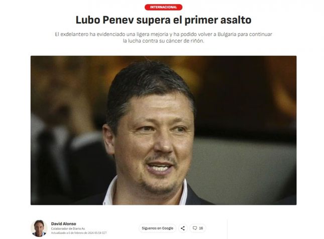 През последните няколко месеца България с нетърпение следи новините за крехкото здраве на една от най-големите си спортни легенди – Любо Пенев. Бившият нападател на „Валенсия“, Атлетико Мадрид и Селта Виго, наред с други отбори, прекара няколко седмици в немска онкологична клиника, подлагайки се на експериментално лечение, целящо да спре бързото развитие на рак на бъбреците, който се е разпространил и в други органи. 59-годишният Пенев показва леко подобрение и успя да се върне в страната си, за да продължи борбата с тази изключително тревожна диагноза.