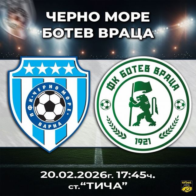 Черно море приема Ботев Враца в мач от 22-рия кръг на Първа лига. “Моряците” срещат своя съперник в петък, 20 февруари, от 17:45 часа на стадион “Тича” във Варна.