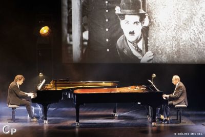 В мултимедийния концерт-спектакъл „Чаплин пианисимо“ ще прозвучат неговите най-известни филмови музикални композиции в изпълнение на два рояла от Жан-Паскал Бентюс и Силвен Моризе. В света на киното двамата музиканти са познати като едни от най-добрите оркестратори и автори на аранжименти, като Бентюс е отличен и с наградата „Грами“. Юджийн Чаплин ще въведе зрителите в историята на музикалните творби и ще сподели лични спомени и анекдоти, свързани с кинематографичното наследство на своя баща. За да се потопим в атмосферата на неговото време, под звуците на двата рояла ще се прожектират знакови сцени от филмите и живота на една от най-забележителните личности в киното на 20. век.
