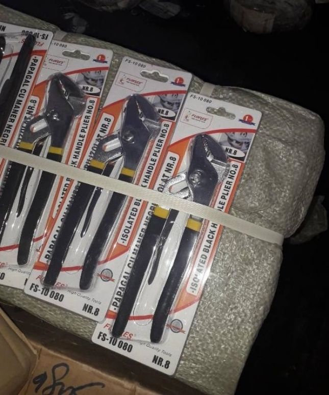 Така освен описаните в митническите документи близо 138 000 артикула, митническите инспектори преброяват още общо 10 563 недекларирани стоки, идентични като вид с декларираните - различни уреди и инструменти като пръскачки, фрези за гранит и метал, дискове за рязане на метал и полиране, шлифовъчни устройства, пистолети за силикон, гаечни ключове, клещи и други.