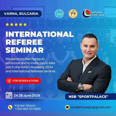 На 24 юни (понеделник) 2024г. в град Варна започва международен семинар за спортни рефери и съдии, към най-голямата световна федерация по кикбокс „WAKO".