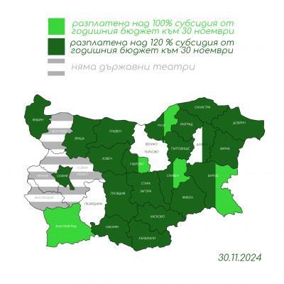 Сред държавните културни институти в сценичните изкуства с разплатена над 120 на сто субсидия са Куклен театър – Варна и Театрално-музикален продуцентски център – Варна.