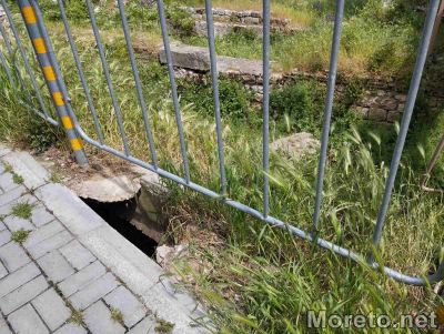 Опасна дупка застрашава посетители на останките от епископската базилика във Варна или минувачите покрай нея, видя репортер на Moreto.net.
