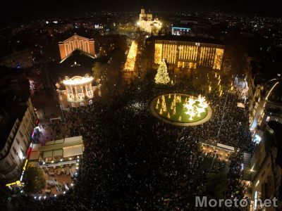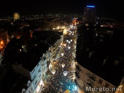 • Към 18:43 ч. шестващите наближиха площада, на който е изградена импровизирана сцена.