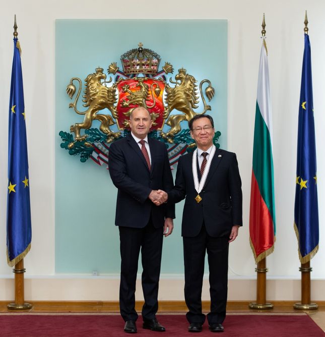България и Япония са партньори в общността на демократичните държави, които споделят общи ценности и принципи, активен политически диалог и успешна съвместна дейност на международната сцена. Това заяви президентът Румен Радев на церемония в Гербовата зала, на която удостои посланика на Япония у нас Хисаши Мичигами с орден „Мадарски конник“ първа степен. Държавното отличие е за заслугите на дипломата за развитието на двустранните отношения.