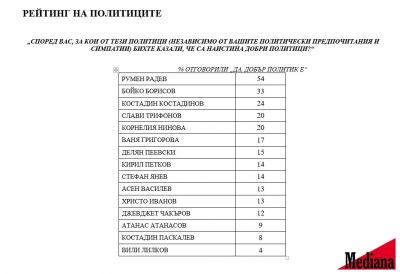 Това показва изследване на агенция "Медиана", проведено в периода – 12-18 май 2024 г. с 978 човека (18+ години) чрез пряко стандартизирано интервю и е представително за пълнолетното население на страната. Проучването е изследователски проект на агенция и е реализирано със собствени средства.